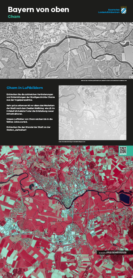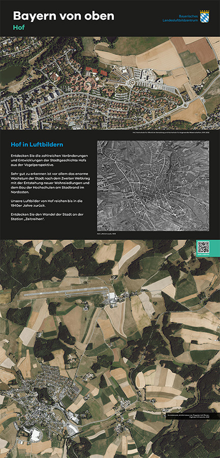 Anlässlich des fünfjährigen Bestehens des Bayerischen Landesluftbildzentrums stellte die Wanderausstellung dessen Angebote einem breiten Publikum vor. Die multimedial gestaltete und leicht verständlich aufbereitete Ausstellung vermittelt einen spannenden Einblick in die Geschichte und Technik der Luftbildfotografie. Auf 14 Ausstellungstafeln wurde den Besucherinnen und Besuchern gezeigt, wie Luftbilder gemacht werden, wie sie aufbereitet werden und wo sie eingesetzt werden.